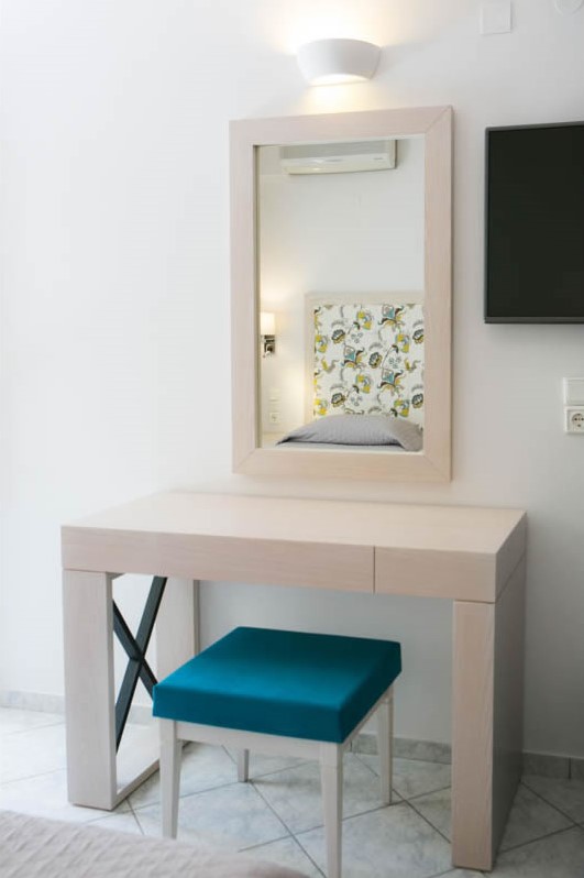 - Amenities: Wi-Fi, Βεράντα, Δύο ηλεκτρικές εστίες, Θυρίδα ασφαλείας, Καφετιέρα, Κλιματισμός, Μπαλκόνι, Ντουζ και τουαλέτα, Πιστολάκι μαλλιών, Τηλεόραση, Τηλέφωνο, Φούρνος Μικροκυμάτων, Ψυγείο